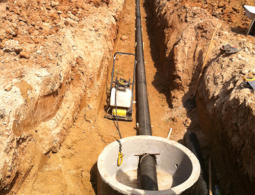 - Земляные и монтажные работы. Выполняется прокладка трубопроводов, установка колодцев, монтаж кабельных линий, устройство теплотрасс и водостоков.